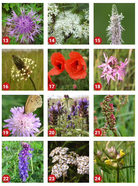 The native seeds were chosen to match the ground conditions, and include Knapweed, Scabious and Agrimony. Examples of the flowers we’re hoping to see are shown below: